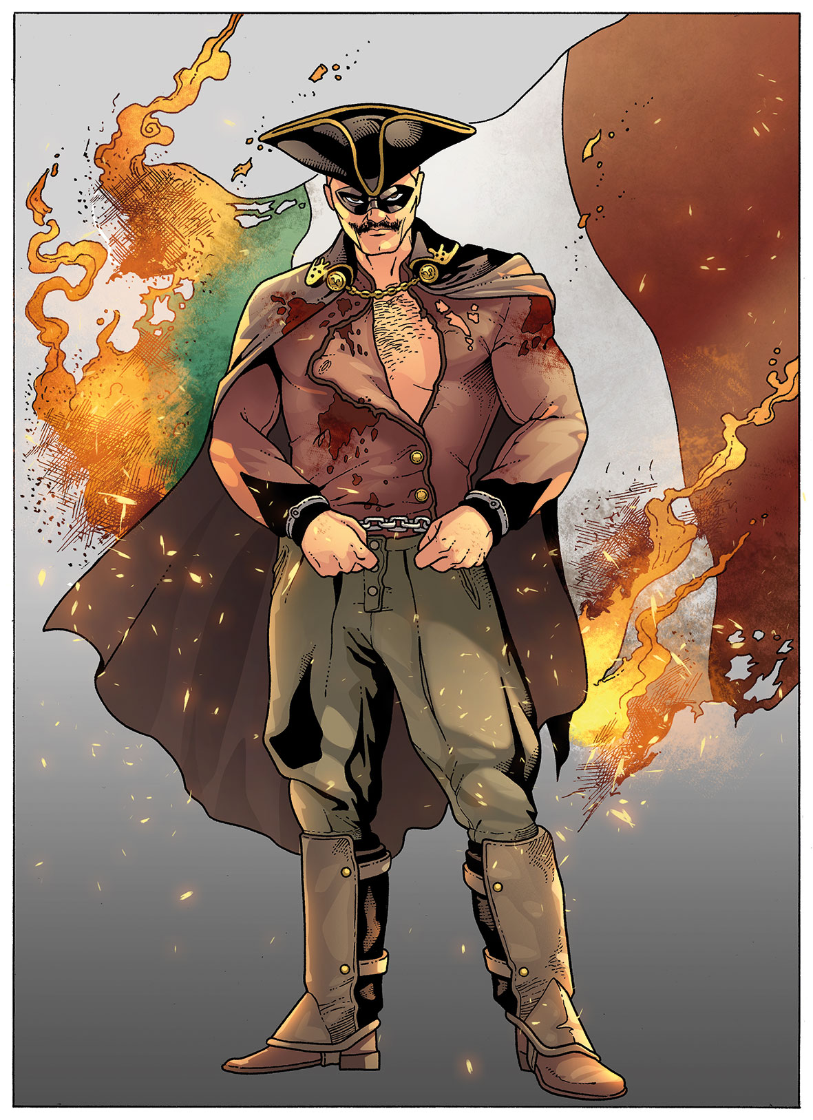 Indossa la maschera del personaggio della commedia d'arte italiana Zanni e un tricorno che si dice essere appartenuto a Masianello. Indossa abiti di fine ottocento o inizio novecento, si dice che questo strano abbigliamento sia in qualche modo legato ai suoi poteri.